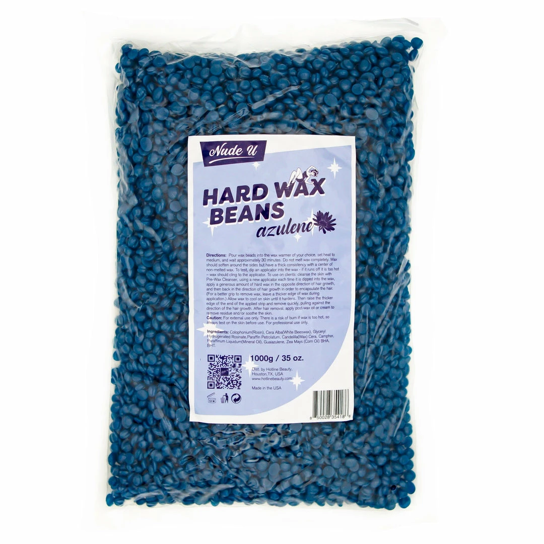 To use on clients: cleanse the skin with Pre-Wax Cleanser, using a new applicator each time it is dipped into the wax, apply a generous amount of hard wax in the opposite direction of hair growth, and then back in the direction of hair growth in order to encapsulate the hair. (For a better grip to remove wax, leave a thicker edge of wax during application.) Allow wax to cool on skin until it hardens. Then raise the thicker edge of the end of the applied strip and remove quickly, pulling against the direction of the hair growth. After hair removal, apply post-wax oil or cream to remove residue and/or soothe the skin.