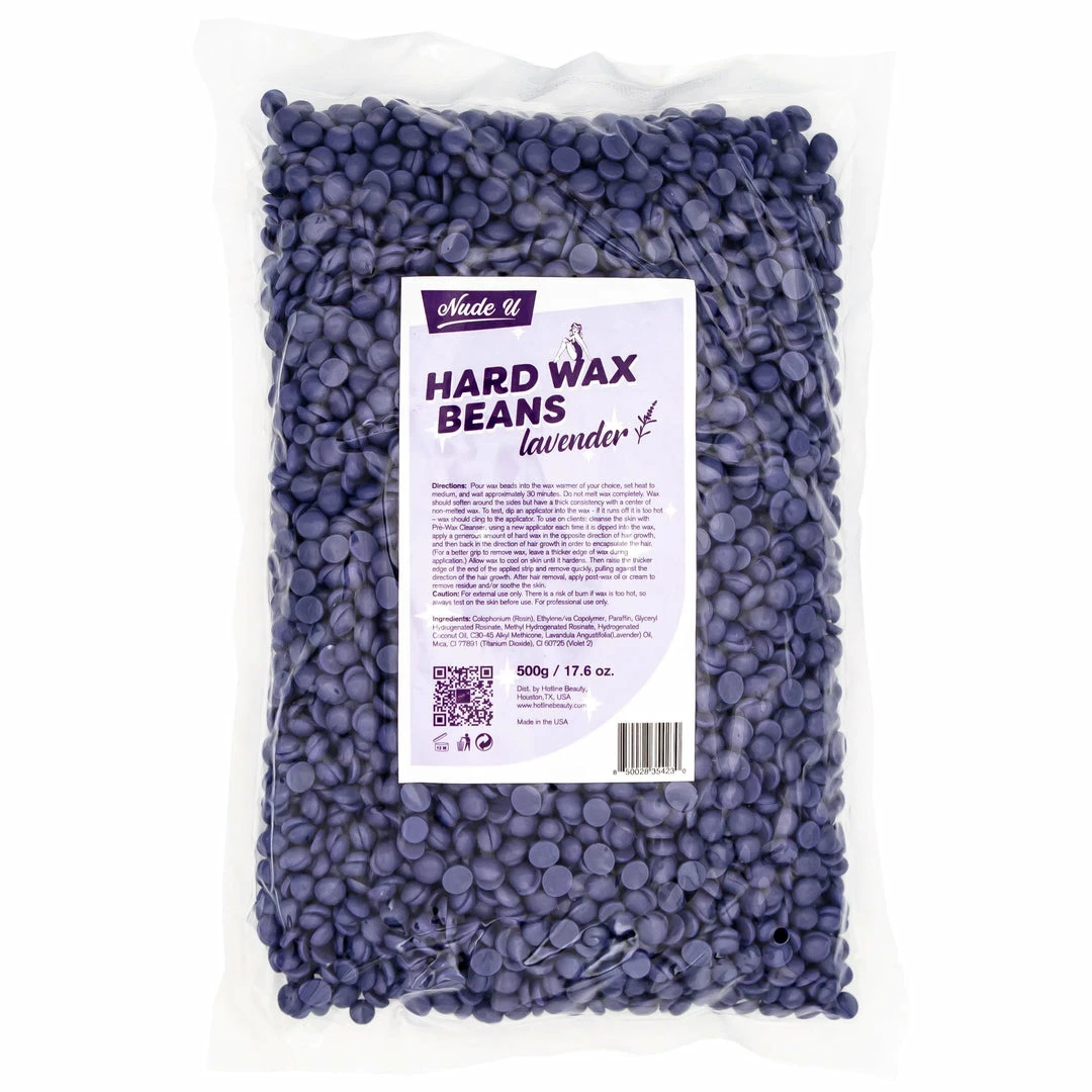 To use on clients: cleanse the skin with Pre-Wax Cleanser, using a new applicator each time it is dipped into the wax, apply a generous amount of hard wax in the opposite direction of hair growth, and then back in the direction of hair growth in order to encapsulate the hair. (For a better grip to remove wax, leave a thicker edge of wax during application.) Allow wax to cool on skin until it hardens. Then raise the thicker edge of the end of the applied strip and remove quickly, pulling against the direction of the hair growth. After hair removal, apply post-wax oil or cream to remove residue and/or soothe the skin.