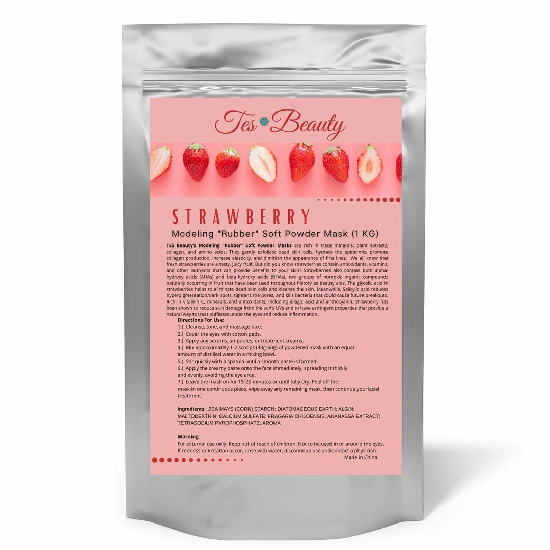 TES Beauty’s Modeling “Rubber” Soft Powder Masks are rich in trace minerals, plant extracts, collagen, and amino acids. They gently exfoliate dead skin cells, hydrate the epidermis, promote collagen production, increase elasticity, and diminish the appearance of fine lines.