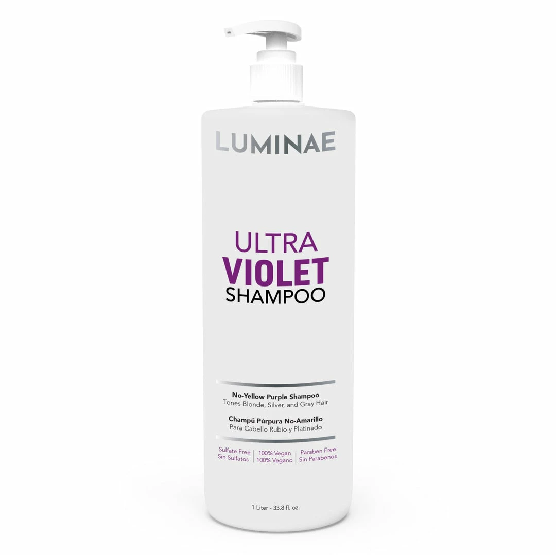 Nuestro galardonado Champú Ultra Violet es masque solo “otro champú violeta.” Diseñado por estilistas, nuestra mezcla patentada utiliza ingredientes naturales activos, abrillantadores ópticos y pigmentos de lavanda que neutralizan hasta los tonos cobrizos mas fuertes, y al mismo tiempo agregando un hermoso brillo plateado al cabello gris natural y / o aclarado. A diferencia de la mayorÃa de los champús tonificantes en el mercado, nuestro Champú Ultra Violet es libre de parabenos, sulfates, ftalatos, gluten y alcohol lo cual lo hace seguro para uso en clientes con extensiones, queratina o cabello tratado con color.