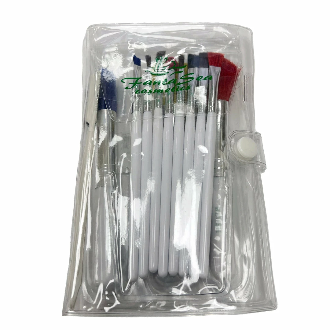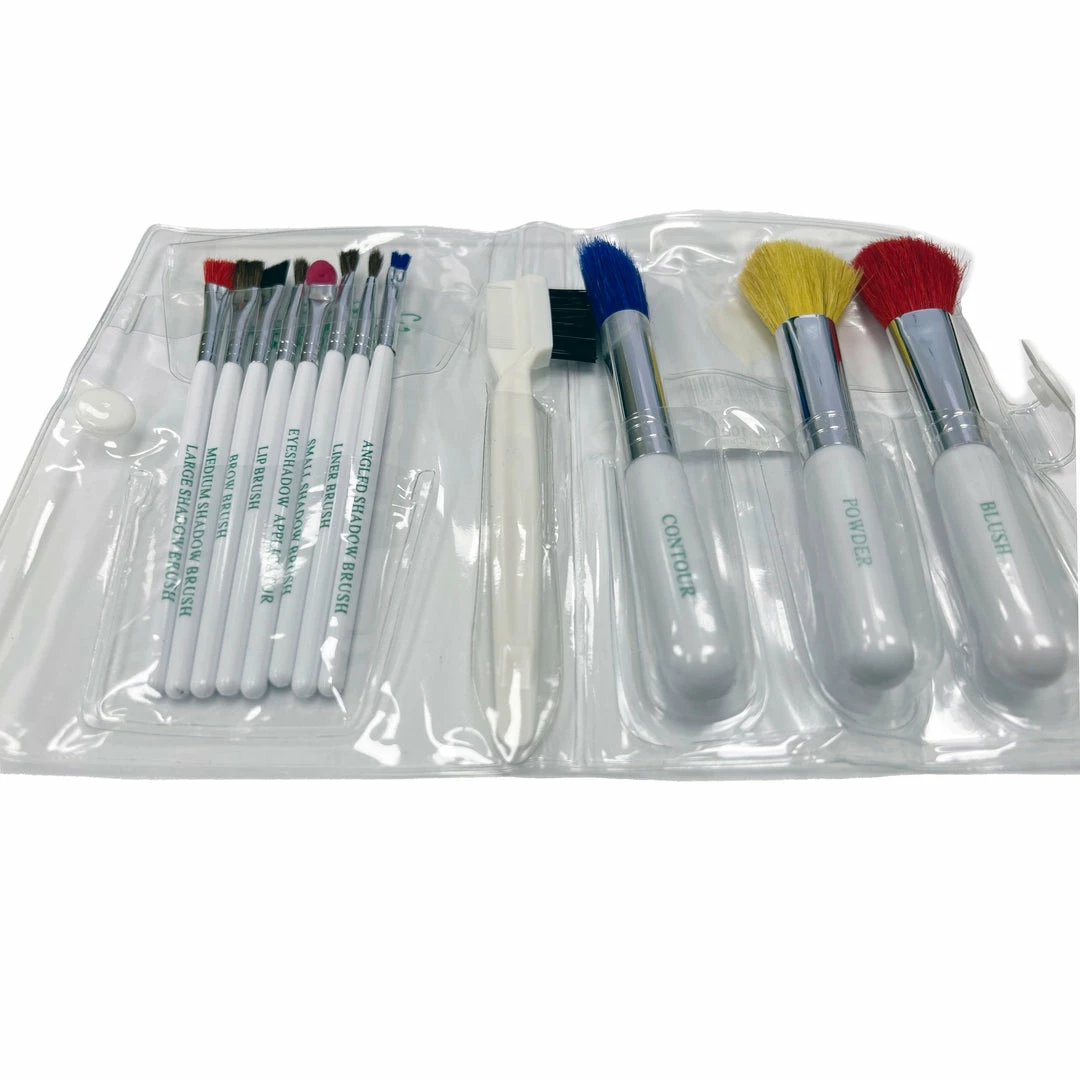 12 brushes with multi-colored bristles that’s an excellent choice for traveling. Comes in a see-through pouch for easy access and storing.