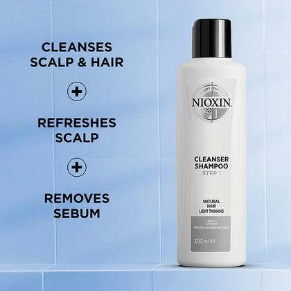 Prepare the scalp and hair for a complete hair thickening treatment with Nioxin’s 3-part System 1 cleanser for natural hair with light thinning. This professional hair product’s Activ-Renewal technology helps remove sebum, fatty acids and other environmental residue from the scalp and hair. Nioxin’s purifying shampoo deeply cleanses the scalp and provides thicker, fuller-looking hair. Nioxin’s cleanser is the first step of a 3-part Nioxin regimen, designed to strengthen the hair and amplify hair structure.