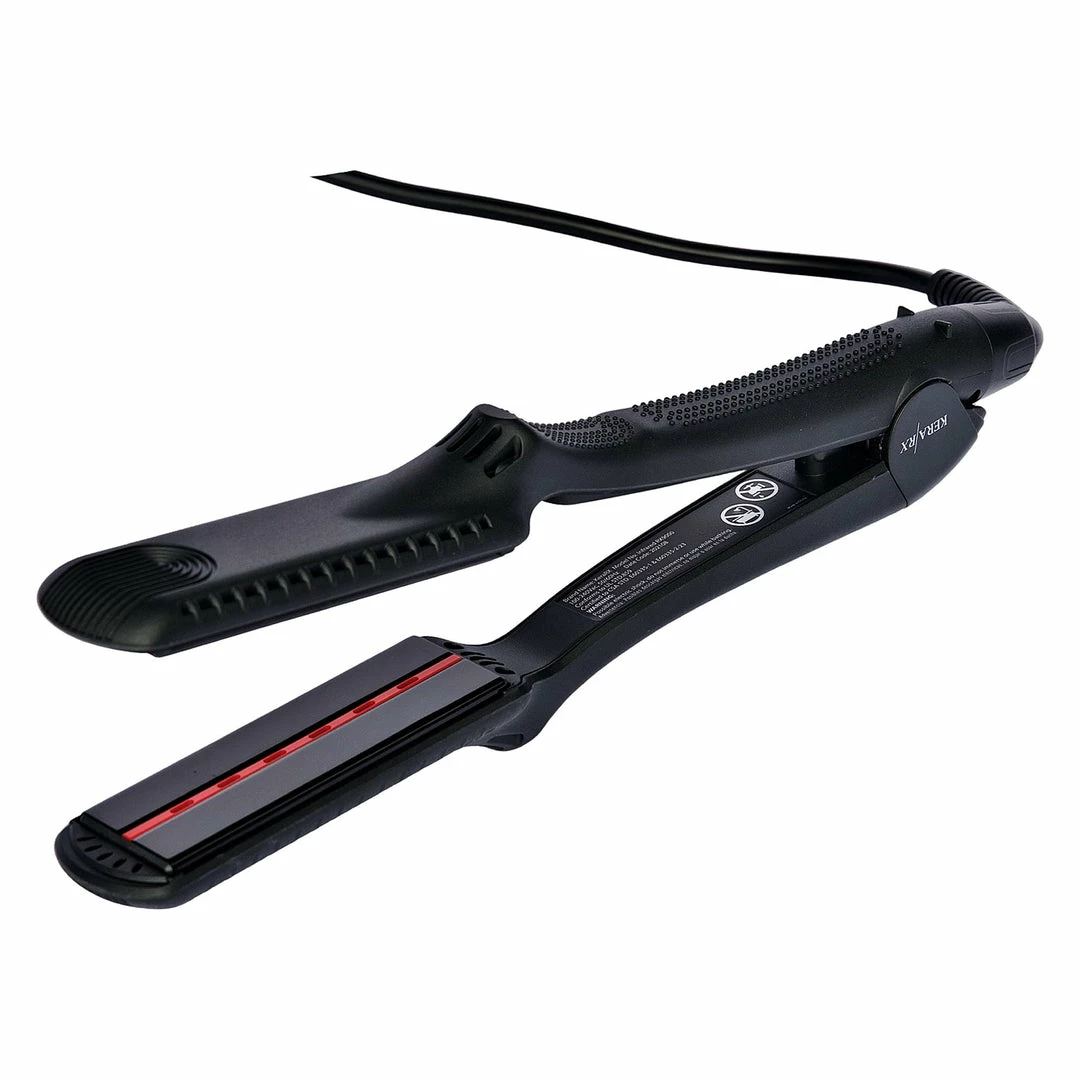 Straighten Hair: Taking ¼” sections, place the combed section of hair between the iron plates. Lightly close the flat iron. Moving away from the scalp, pull the iron away from the head at a consistent speed.