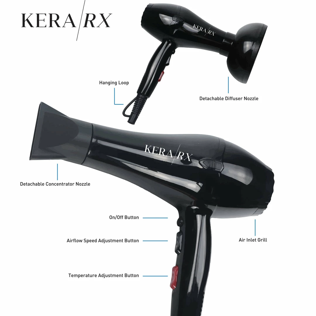 Ionic Technology: Produces negatively charged ions that breakdown positively charged iOS in the hair shaft to reduce drying time, close the hair cuticle, and lock-out humidity and frizz.