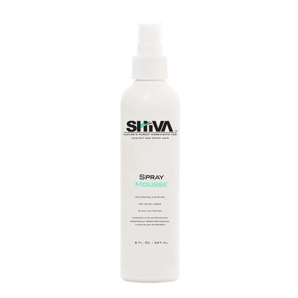 Lightly towel dry freshly cleansed hair. Spray even amounts of Shiva Spray Mousse thoroughly into the hair. Style as desired. To reactivate mist with water.