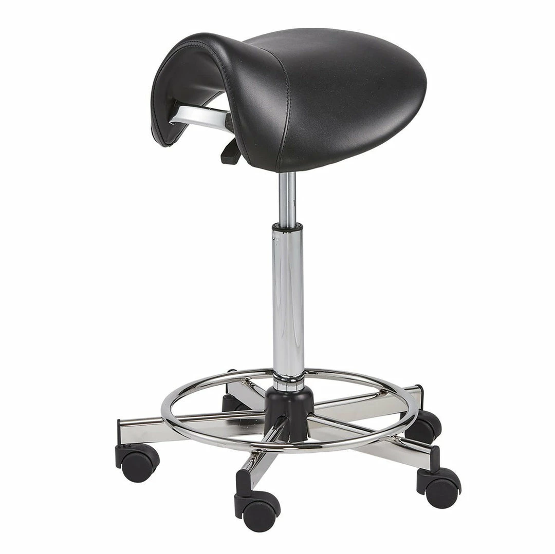 Professional Cutting Stool with a padded and upholstered seat. This stylist stool features an extra-thick seat, 5-star base with durable casters, a fixed foot ring and the height is adjustable from 23″ to 33″. This cutting Stool removes all pressure from your lower back and knees and is built with great quality to last for many years.Â